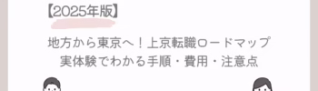 ※本記事はPRリンクを含みます。 上京したい人のために、リアルな上京体験談を発信する上京情報メディア『上京タイムズ』では、地方から東京に転職にするために役立つさまざまなトピックスをお届けしています。 結論:上京転職は ① … 続きを読む 地方から東京へ!上京転職ロードマップ【2025年版】実体験でわかる手順・費用・注意点